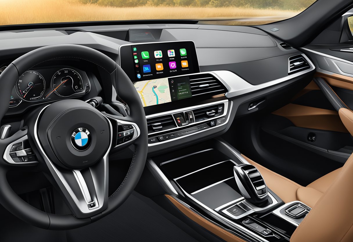 Once the iPhone is connected to the BMW’s iDrive system, the driver can access Apple CarPlay by selecting it from the iDrive menu. This will bring up the familiar Apple CarPlay interface, which includes icons for various apps such as Phone, Messages, Maps, and Music.